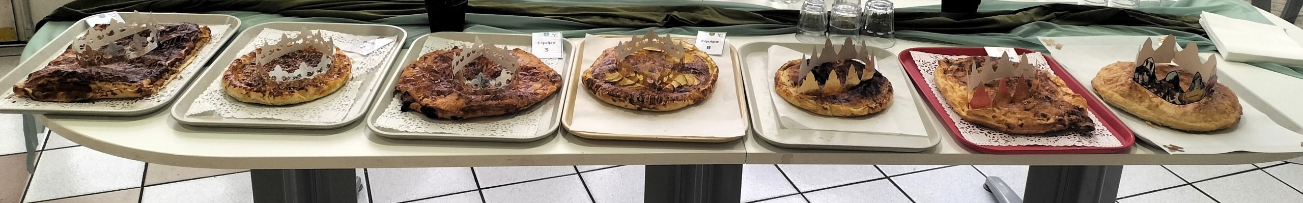 Cette année, un concours de galettes des rois était organisé. Sept équipes composées de résidents et d’agents ont fabriqué leur galette des rois durant la matinée.