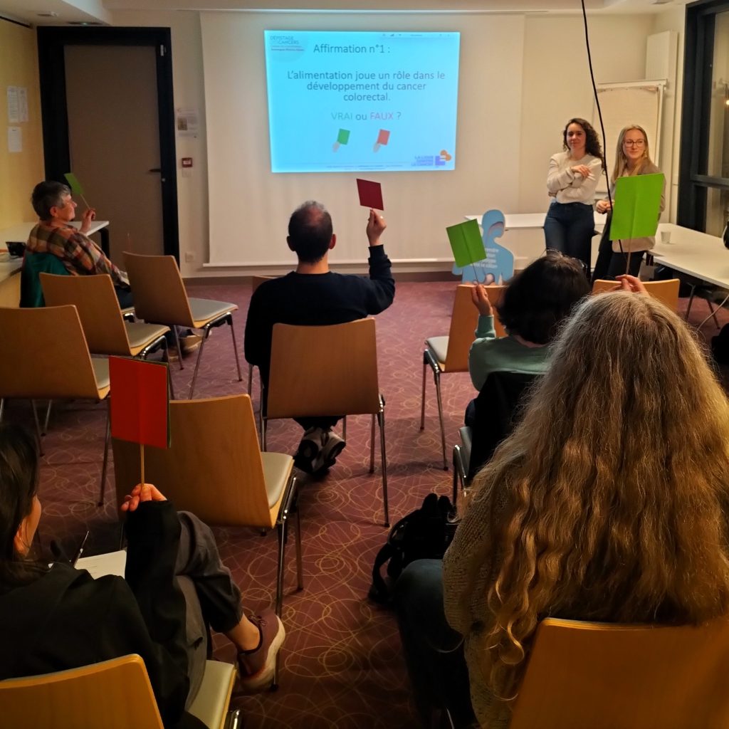 Elise BALANDREAU, intervenante de la Ligue contre le cancer et Clarisse VIGNOLET, intervenante de Dépistage Cancer Aura ont ensuite pris le relais. Puis, un temps d’échange avec le public a eu lieu : questions, débats, partage d’expériences…